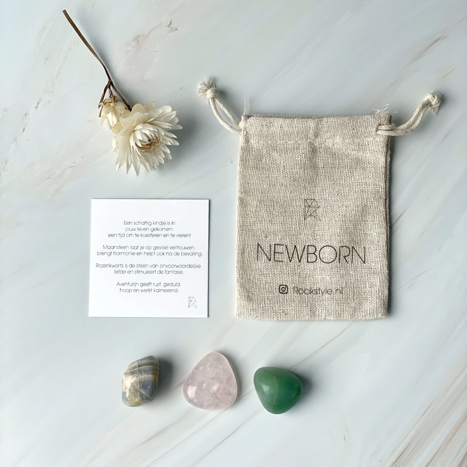 Deze complete wellness-set combineert de hartopenende geur van roos met de zachte, harmonieuze energie van ruwe Rozenkwarts. Perfect voor een moment van self-care of als liefdevol brievenbuscadeau.