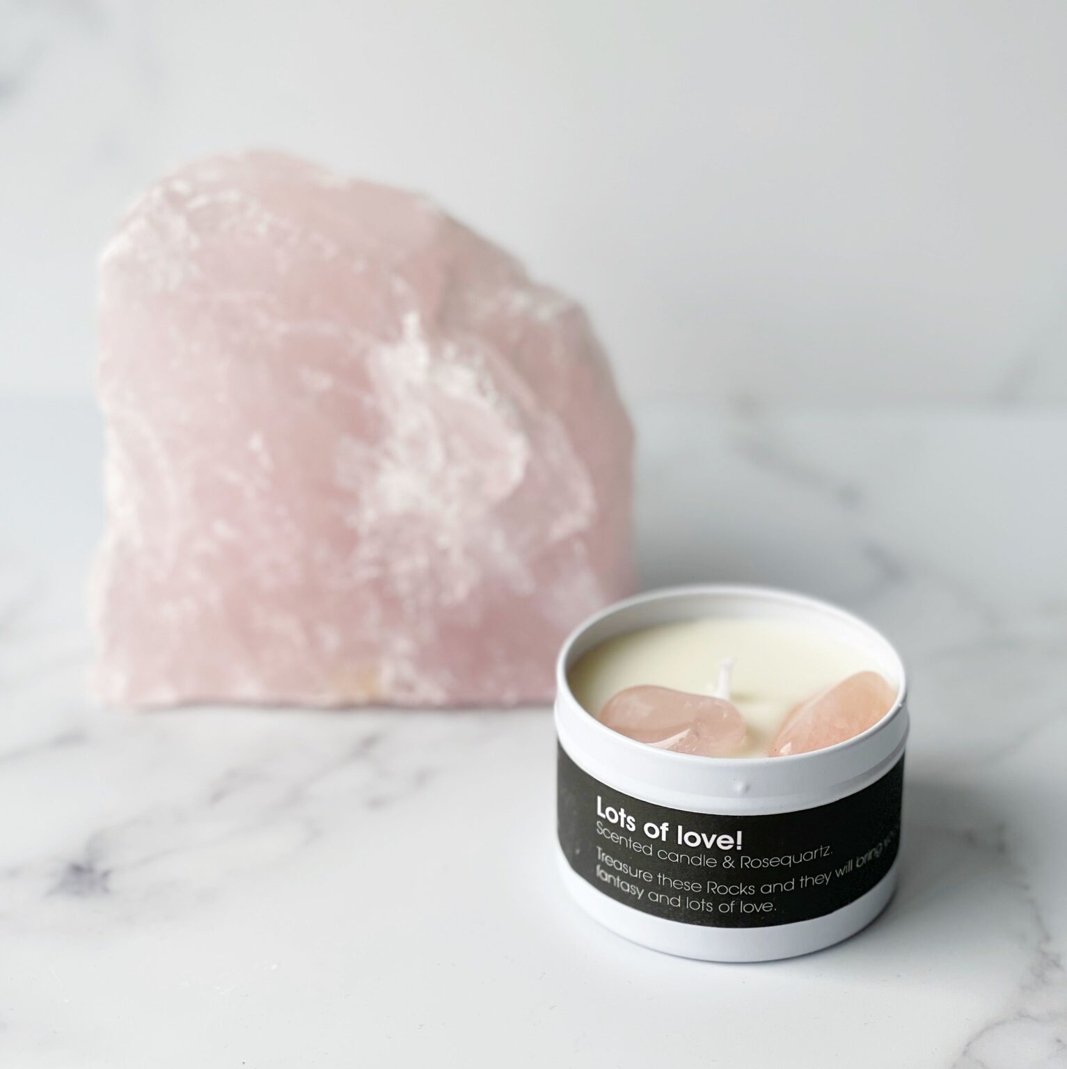 Lots of love- Edelsteen Geurkaarsje in blikje – Rozenkwarts